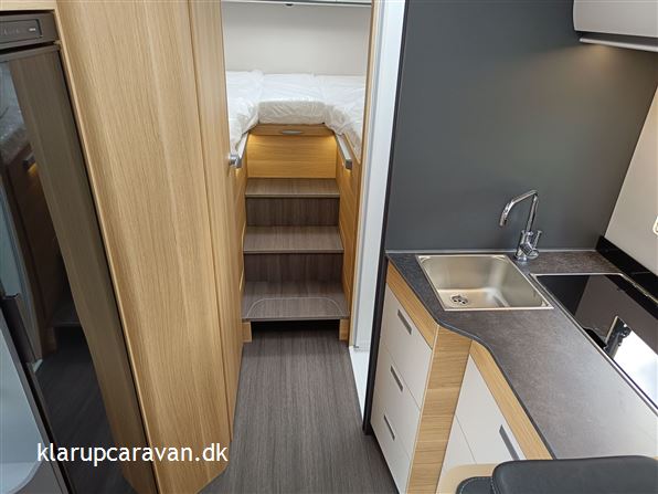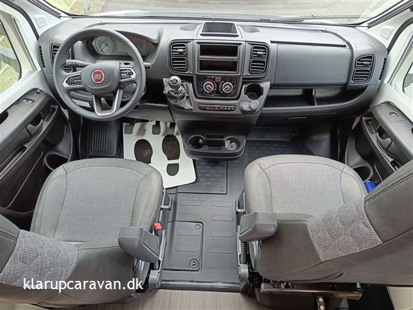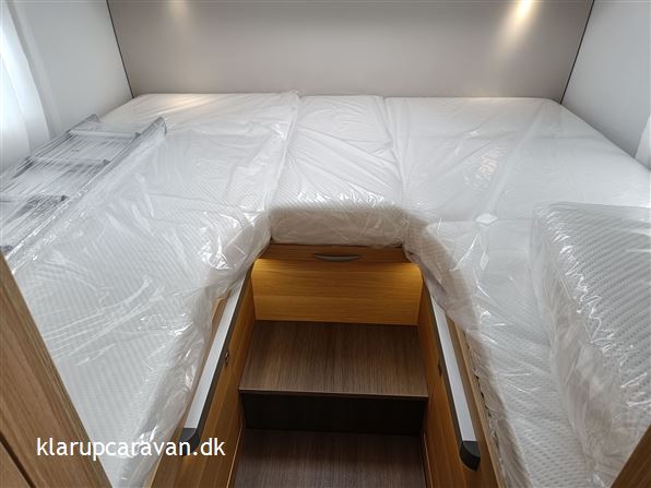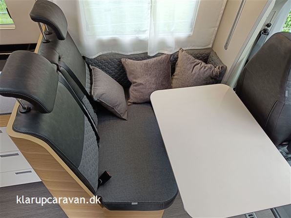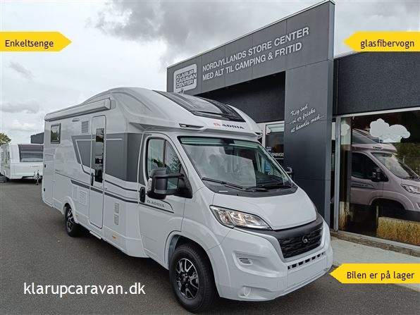 Rigtig flot og stilren camper fra Adria med enkeltsenge i bag og letvægtsseng foran, med nem betjening og adgang. Smart multimedievæg med tv-holder, USB-stik og mobilopladning. Stor garage med to døre, stikkontakter og LED-lys. Adria 'Comprex' konstruktion med hvidt karrosseri og stort panoramavindue. Truma combifyr til opvarmning.