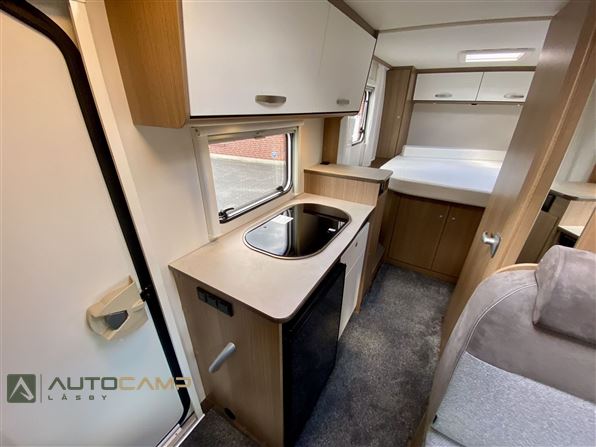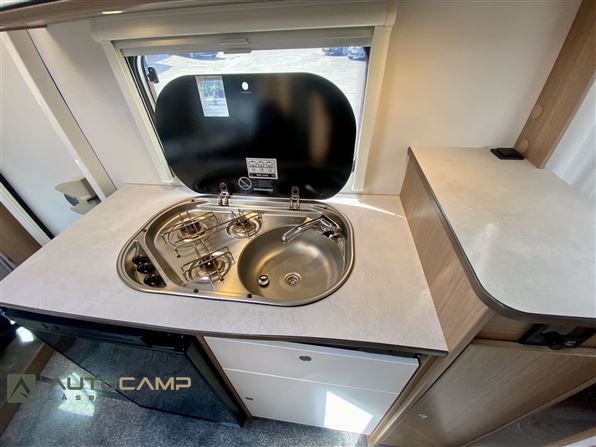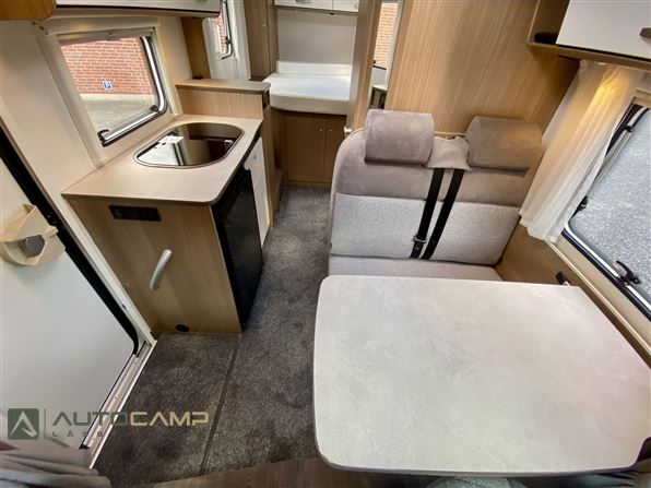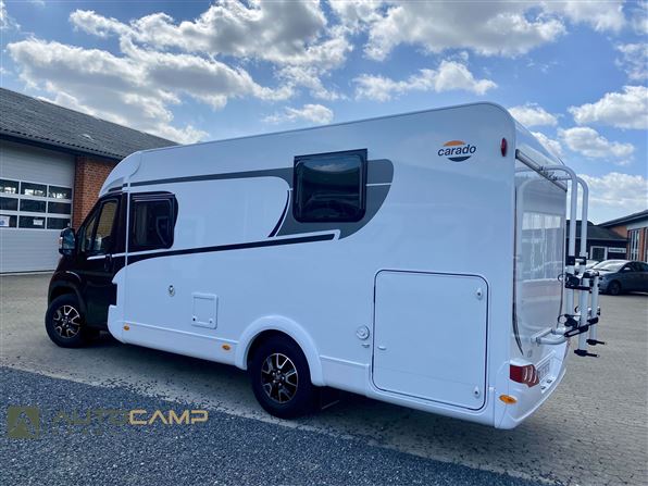 Fantastisk flot og solid camper fra tyske Carado - her har vi en kompakt camper på kun 214 bred og 686 lang - det er selvfølgelig en Carado V339 som også har en veludnyttet indretning. Vognen har en indretning med dobbeltseng bagerst med stor garage, og i midten af vognen et veludnyttet køkken med god bordplads og toiletrum overfor. Forrest i vognen er den lyse siddegruppe med drejbare for-stole.