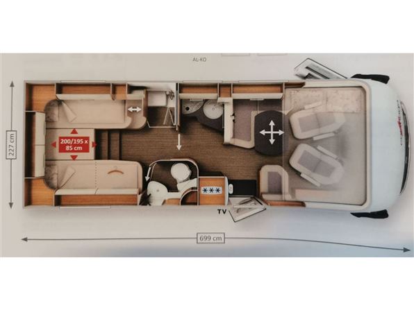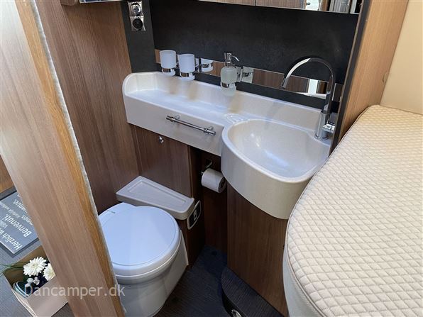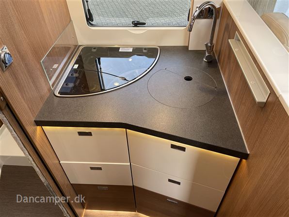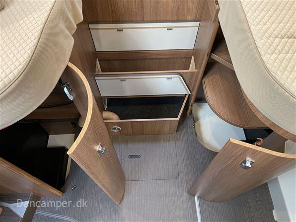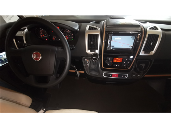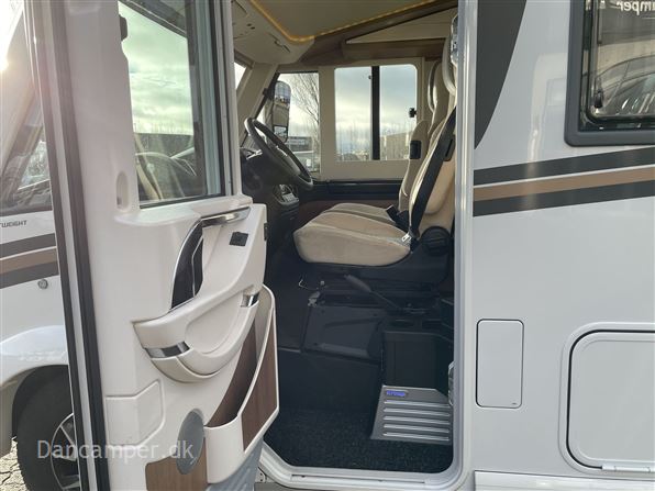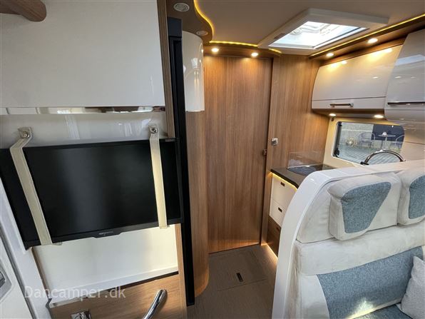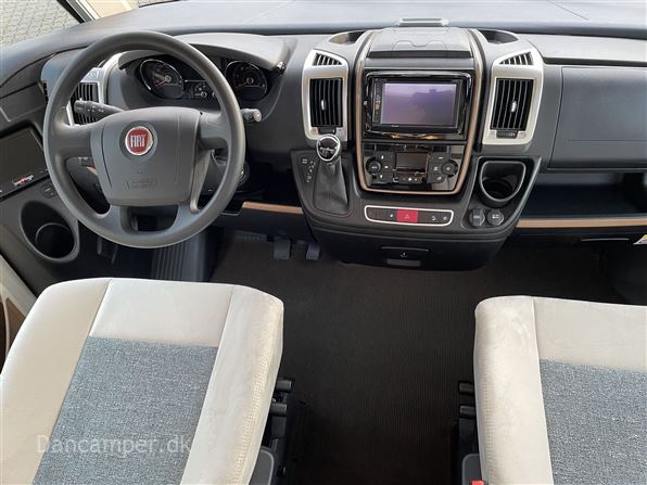 Denne fantastiske helintegreret luksus-camper indeholder stort set alt hvad man kan ønske sig. Ikke alene topkvaliteten kan man nyde under kørslen, men også alt det udstyret som gør turen let og ubesværet. 160 hk kraftfulde motor og 9-trins automatgear gør kørslen legende let. 16" alufælge, 24" fjernsyn. SOG, Gas-fyldeflaske, Kaffemaskine, Frostkontrol på kombifyret, Ekstra stort Truma Combifyr med el stave og dobbeltbunden med varme, gør denne vogn yderligere velegnet til vinter camping. Store magasinrum i dobbeltbunden med adgang udefra og indefra. Camperen er bygget på Fiat Ducato med ALKO lavchassis. Der tages forbehold for tastefejl.