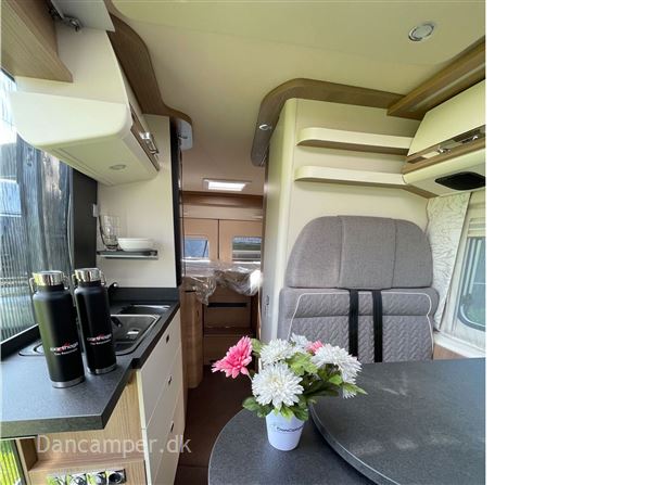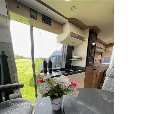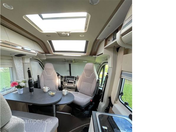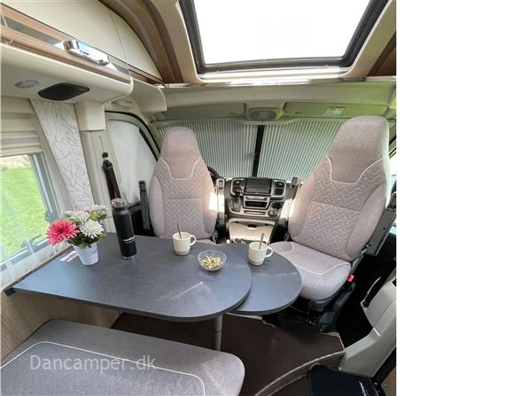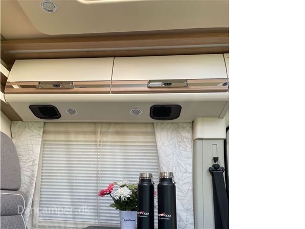 Carthago Charming LE GT, spækket med lækkert udstyr, GT modellen med fuld ståhøjde helt frem over forsæder og skylight over forsæder, FLOT belysning, enkeltsenge som kan klappes op, god siddegruppe med vendbare forstole, køkkenafdeling med 3 skuffer, skraldespand, 140Hk & 9-Trins automatgear, fuldaut. klima. opvarmes med Truma gas-combifyr med el-stav. 16" alufælge. Frisk og spildevandstankene er frostsikret. 70L kompressorkøleskab, LED kørelys, Pioneer Multimedia med digitalt bakkamera, ratbetjening. Toilettet kan drejes væk fra toiletrummet, så man kan udnytte bruserummet fuldt ud, markise, Truma Duo Gaskontrol med crashsensor. Alt i alt en autocamper til campisten der ikke vil gå på kompromis med udstyr og kvalitet. Kom forbi og se denne dejlige camper. Exclusive førerassistent pakke, chassis pakke og bodels pakke. Møbelkoncept tofarvet i kirsebærudfærelse Cherry Classic. Der tages forbehold for tastefejl & prisændringer