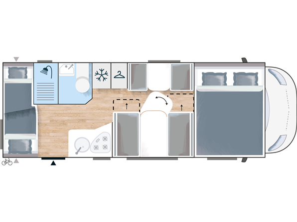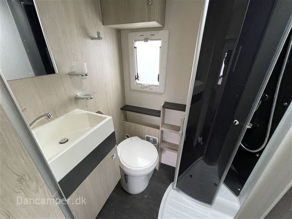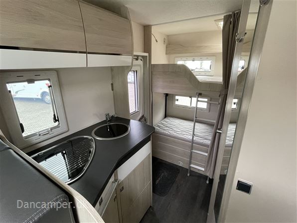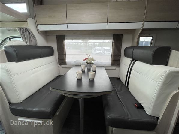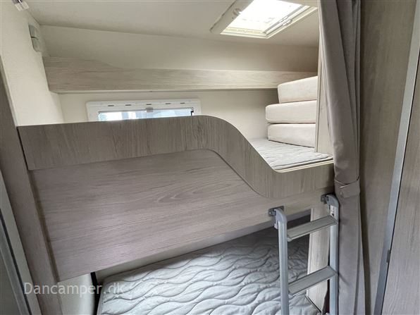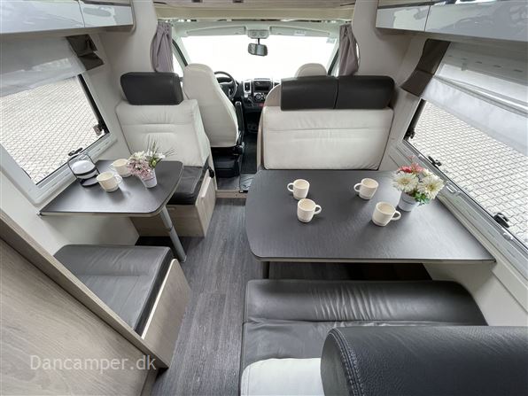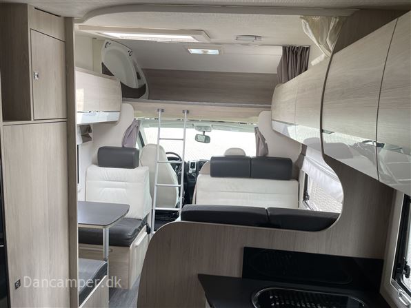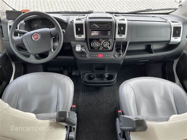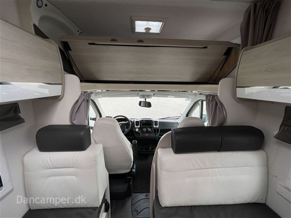 Rigtig god alkovemodel med plads til hele familien - børnefamiliens foretrukne, Vognen har 7 selepladser & sovepladser og er under 7 m lang. køkkenafdeling med 3gasblus & 142l Køl/frys, toiletrum med separat bruseniche, klædeskab og overskabe, i det hele taget er pladsudnyttelsen optimal og med mange smarte detaljer, en dejlig behagelig let kørt camper med Fiat 150Hk 6-trins automatgear, som giver et godt kraftoverskud, fartpilot, ESP m.Traction+, aircon på bodel, dobbelt airbag, el sidespejle m.varme, manuelt klimaanlæg, bak-kamera, NX5 gas / alarmsystem, Wifi antenne, siddegruppe med mulighed for seng i fuld bredde! Denne kvalitets-autocamper´s bodel er opbygget efter de nyeste principper, der er fokus på stabilitet og optimal isolering - EXP med høje varme- og støjisolerende egenskaber. Isolering i tag: 54mm, gulv: 64mm og sider 30mm. Bund, sider, og tag er udvendig beklædt med glasfiber og taget er ekstra forstærket mod haglskader. Der tages forbehold for tastefejl & prisændringer