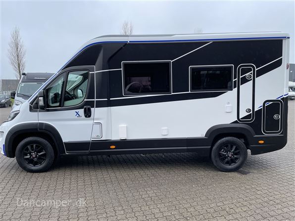Spændende nyskabelse. Det bedste fra to verdner - campervan og autocamper. En cross-over model, der vil noget! X550 er hverken en van eller en klassisk autocamper. X550 er kompakt udvendig og rummelig indvendig. I denne serie X550 er inkluderet en X-tilbehørspakke: Markise, Solcellepanel, Udvendig belysning over bodelsdør, Myggenet m.m. Connectpakke: Ratbetjent radio med Bluetooth og Touchscreen samt bakkamera. Aluminiumsfælge 16", Tågelygter, Klapbare sidespejle, Plisségardiner i førehus, Bodelsdør med vindue og centrallåse i bodel/bildel. Der er Myggenetsdør, 100% LED-beslysning og i det hele taget et eksklusivt design. Articpakke: Isoleret og opvarmet spildevandstank, udvendig termomåtte til forruden, dieselsvarme, El-gulvvarme i gangarealet (220V, Ikke til opvarmning - kun til behagelighed). Der tages forbehold for prisændringer og tastefejl.