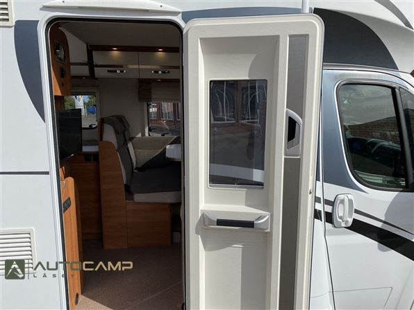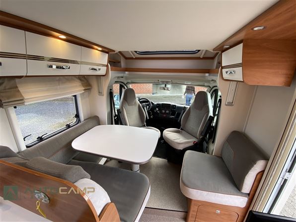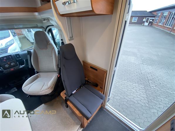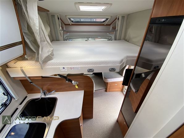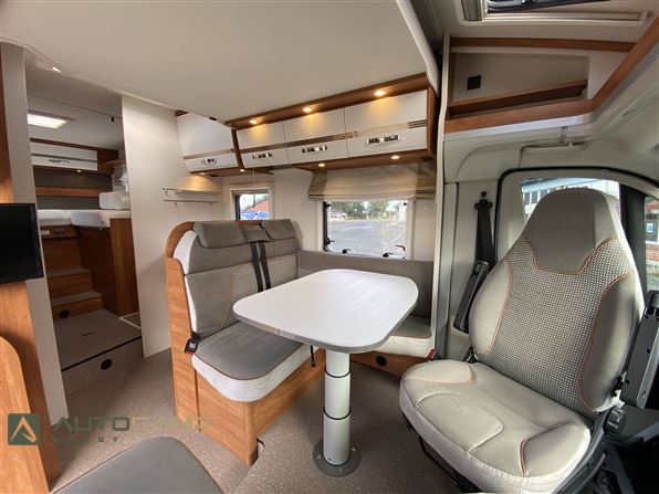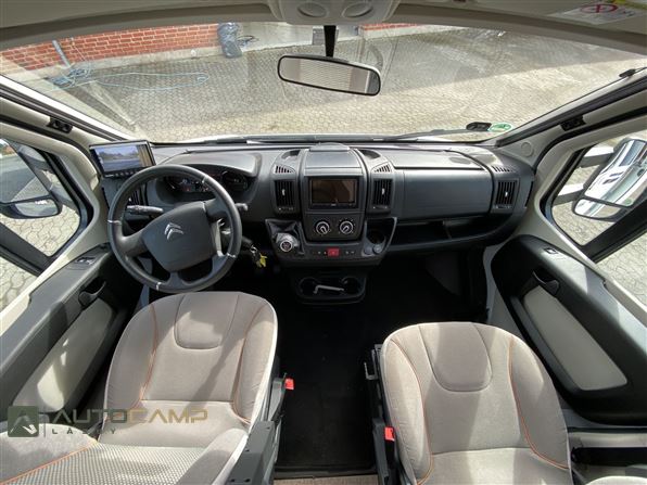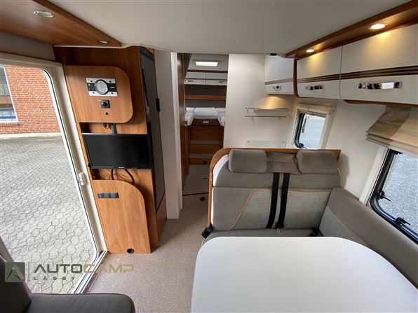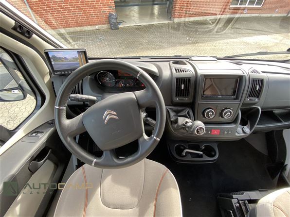Udstyr: Partikelfilter, Euro 6, Multimedie med Android/Carplay, Bakkamera, Aircon., 160HK, LED kørelys, Læderrat og gear, 16" fælge, Fartpilot, Elruder, Elspejle, Markise, Cykelholder, Elektrisk sænkeseng, 5. selepladser, 140L køleskab, Vindue i indgangsdør, Opredning i siddegruppe, TV, Plissé i førerhus.