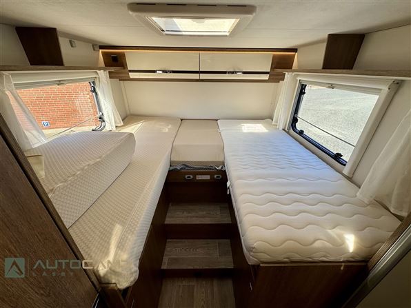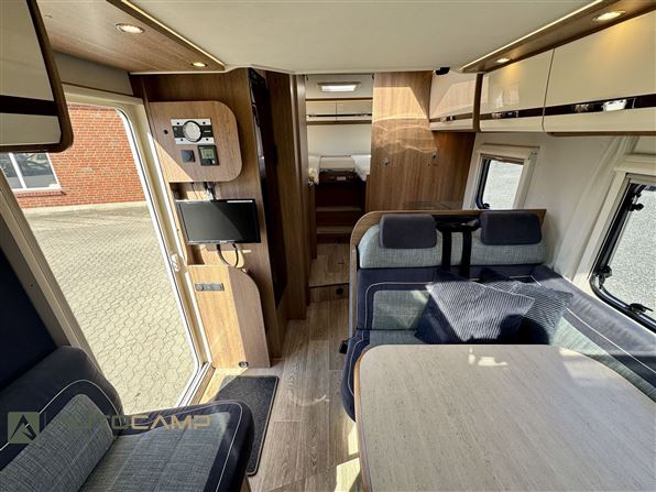 Udstyr: EU6, Partikelfilter, 150HK, Alufælge, Automatisk klima, Multimedie m. radio, Fartpilot, ESP, Plissé i førerhus, Duo Control, Truma 6E, Markise, Panorama tagluge, Elektrisk sænkeseng, Myggenetdør, "L" siddegruppe.