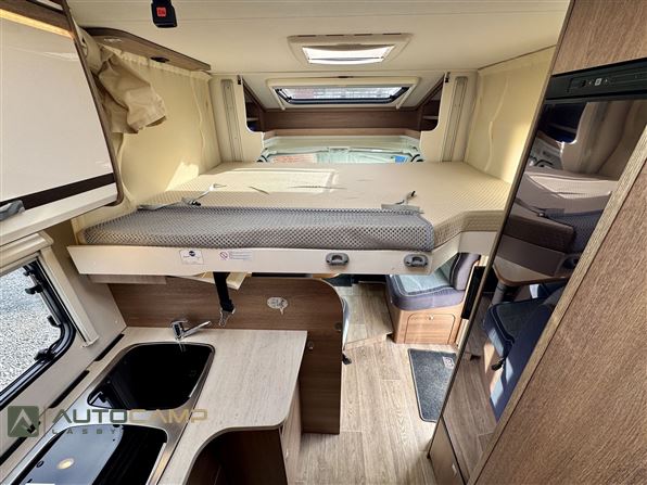 Udstyr: EU6, Partikelfilter, 150HK, Alufælge, Automatisk klima, Multimedie m. radio, Fartpilot, ESP, Plissé i førerhus, Duo Control, Truma 6E, Markise, Panorama tagluge, Elektrisk sænkeseng, Myggenetdør, "L" siddegruppe.