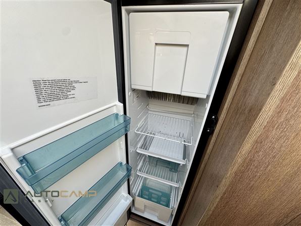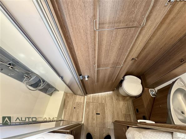 Indretning: Autocamperen byder velkommen i stor l-siddegruppe med drejbare førerstole med hæve/sænkeseng over. Vinkelkøkken med komfur, køl, frys og håndvask, separat toilet og bad med dobbeltfunktion luk bør dør. høje enkeltsenge med stor garage under.