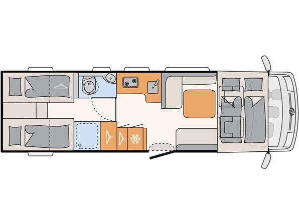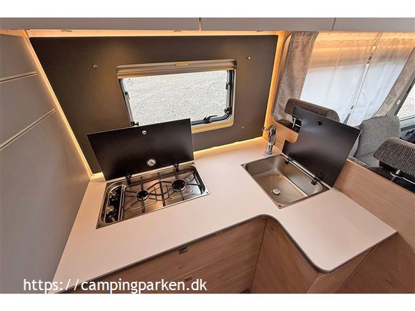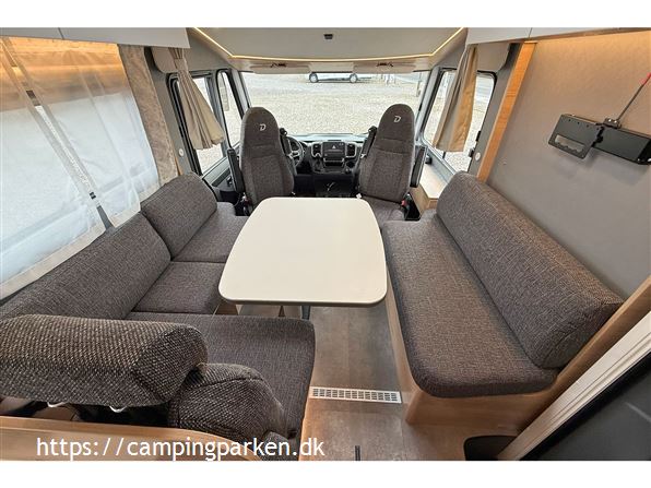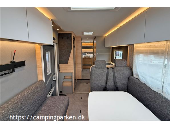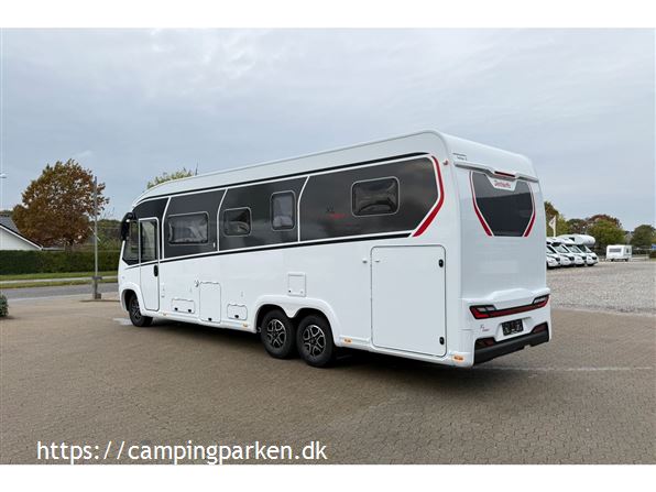 3-akslet luksus autocamper på AL-KO chassis med suveræne køreegenskaber og lang levetid med træfri og rådsikret Lifetime-Smart konstruktion. Ingen bekymring om vægt; 5.400 kg totalvægt og en lastevne på over 1.300 kg. Ægte helårsvogn med bl.a. vandbåren varme, opvarmet plant dobbeltgulv med frostsikret vandinstallation og stor opvarmet garage. Ekstra høj sengekomfort, ståhøjde på 2,08 cm og meget opbevaringsplads. 10 års tæthedssikring ved årligt eftersyn. Komplet udstyret, få hele konfigurationen i Camping Parken.
