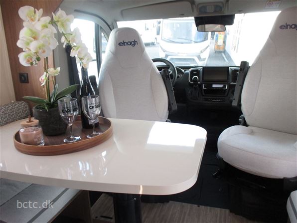 SÅ ER DEN HER ENDELIG !!! Den store 5 personers Baron 65 som er SPÆKKET MED UDSTYR. Camperen er med to store enkeltsenge med udtræk til én stor dobbeltseng. Kæmpe siddegruppe og stor alkove med plads til børn eller børnebørn. Virkelig en lækker og rummelig camper, der er bestilt med: 8-trins automatgear, adaptiv fartpilot, lys- og regncensor, tråløs oplader til mobiltelefon, fuld LED-forlygter, vejbaneassistent, skiltegenkendelse, fører-træthedsregistrering, intelligent fartassistent, stor markise på 450 cm, udvendigt gasudtag, bruser-udtag, multistik, surringsskinner med øjer i garage, automatisk klimaanlæg i førerhus og meget mere. Stort køleskab med separat fryser. Det store Truma Combi 6 E varme til gas og el. 5 selepladser og 5-6 sovepladser. Kom og oplev den suveræne kvalitet, som Elnagh er kendt for. Nyt flot design! Tågelygter, indfarvet kofanger, 16 alufælge, rat og gearknop i ægte læder, Techno instrumentbord, elektrisk håndbremse, TMPS, stort 9" Pioneer m/ Apple CarPlay og Android Carplay/Android Auto, bakkamera, 200 W solcellepanel med MPPT, plissé-gardiner i førerhus.