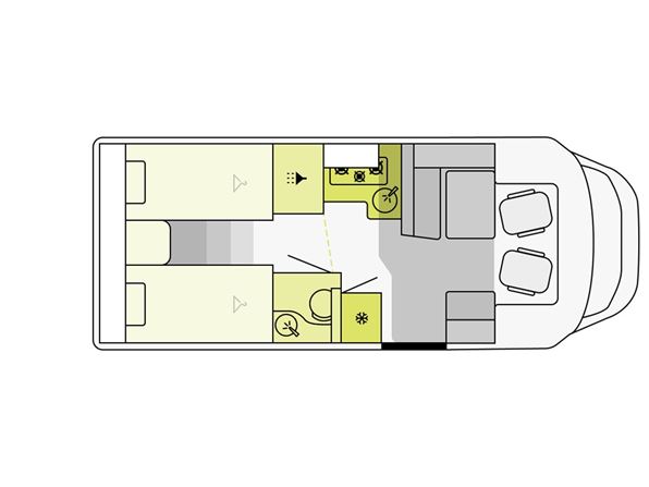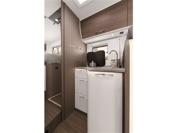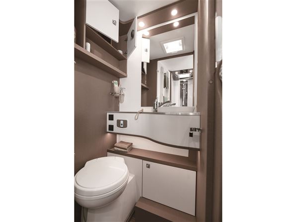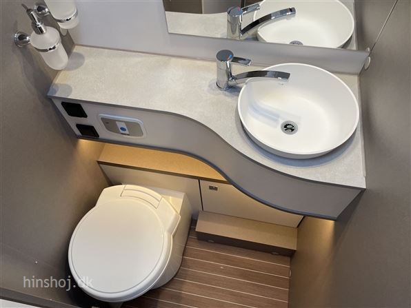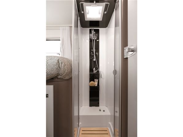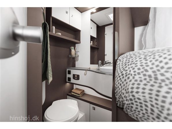 Stort køleskab og separat brusekabine: For en komfortabel oplevelse på farten.