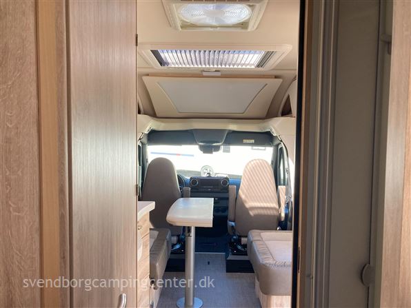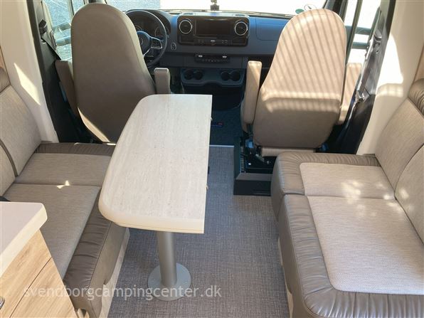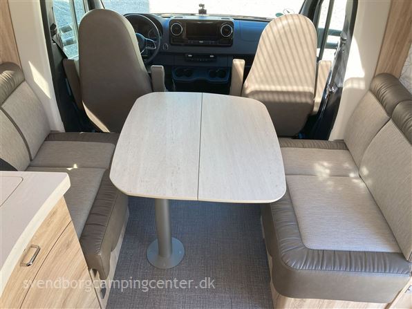 Helt utrolig flot og fantastisk lækker Eura Mobil T726EF "Premium Plus" på Mercedes chassis kun kørt 21300KM og med et væld af udstyr. 170HKs motor MB Sprinter 2,0 CDi, 9-trins aut.gearkasse og indrettet med 2 enkeltsenge, siddegruppe med 6 siddepladser med mulighed for ekstra opredning. I alt 3-4 sovepladser. Toiletrum og seperat brusekabine. Varmekilde fra det fantastiske Alde centralvarme system. Solceller monteret, 1700W Inverter, 2x100Ah Lithium batterier. Mediecenter med Navigation, bakkamera (dobbelt, viser bagud v/kørsel) Radio. 92L brændstoftank, skiltegenkendelse, lysautomatik m/aut. op- og nedblænding, varmeskydende forrude, elektrisk parkeringsbremse, elektriske sidespejle, adaptiv fartpilot, vejbaneassistent, regncencor, Dashcam. Skal ses og opleves for fuldkommen bedømmelse. Pris er inkl. lev.omk. og nr.plader.
