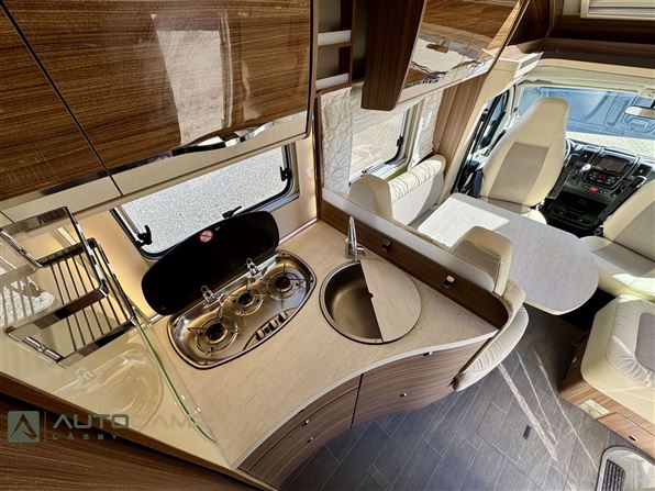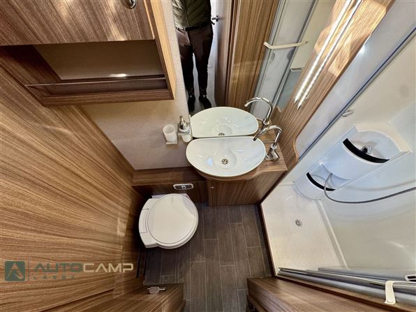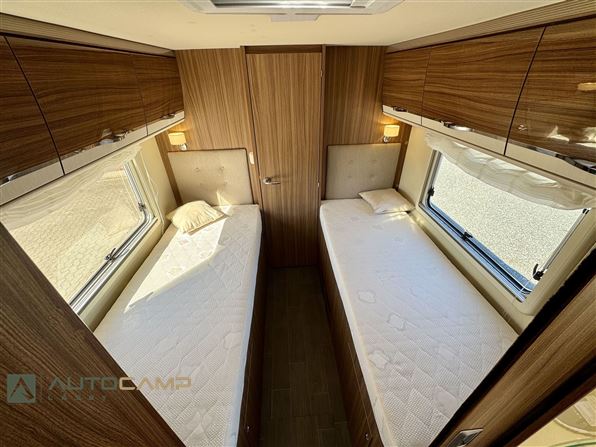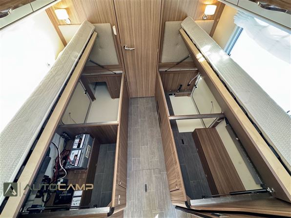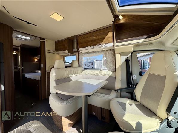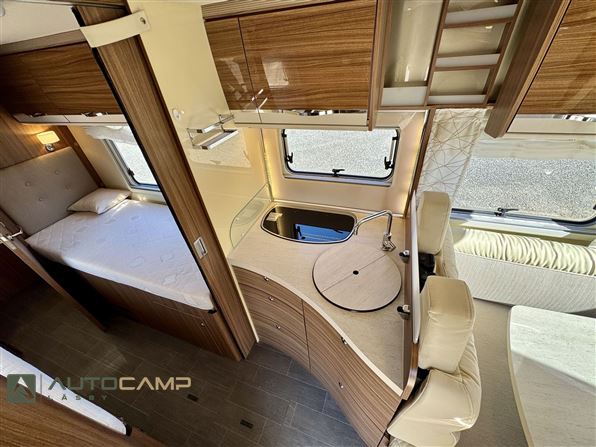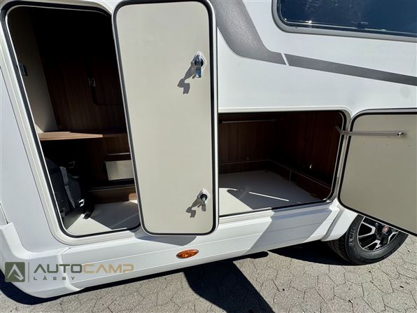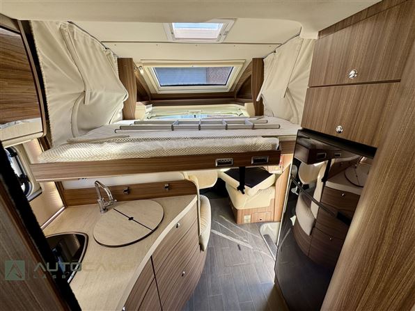 Kvalitetsvogn fra Tyske Eura Mobil, med dobbeltbund og ALDE varme som gør den til en ideel vintervogn. Vognen har en dejlig åben indretning, med det store badeværelse i bag, hvor du efterfølgende får de lave enkeltsenge med masser af plads. I midten af vognen e køkkenet med stor køleskab. Forrest den dejlige siddegruppe med integreret sænkeseng i loftet.