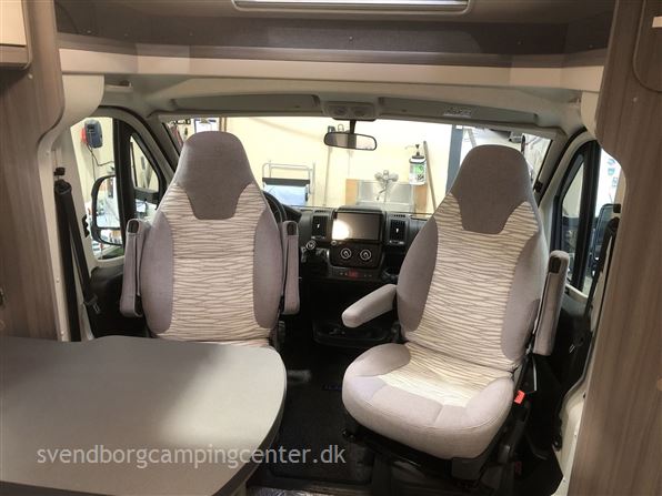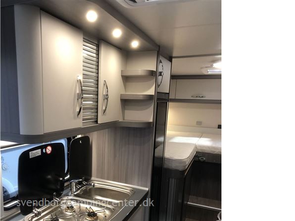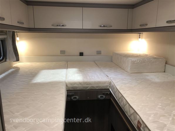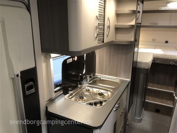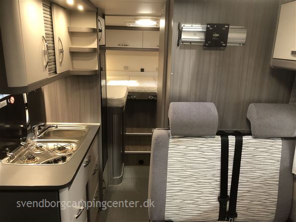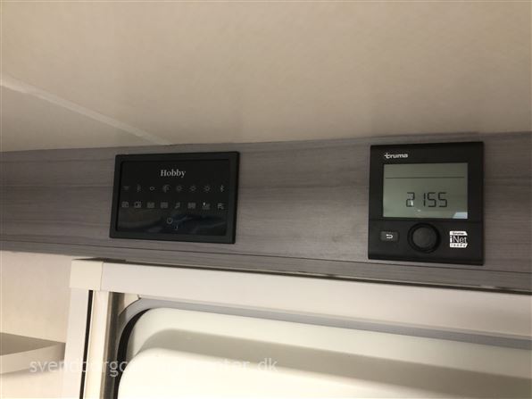 Indrettet med 2 enkeltsenge med udtræk. lækkert køkken med stort slim køleskab 133 L, flot toilet med bruser og en dejlig siddegruppe. Her er der tale om Hobby's Edition udgave som er spækket med udstyr fra starten.