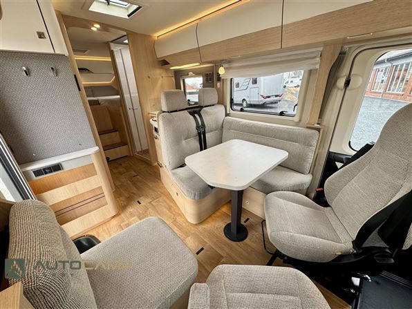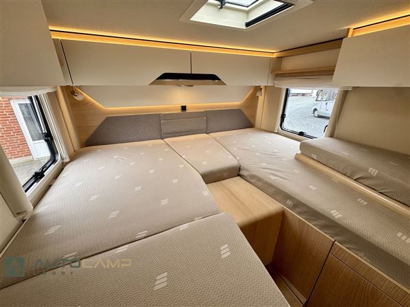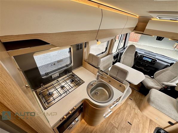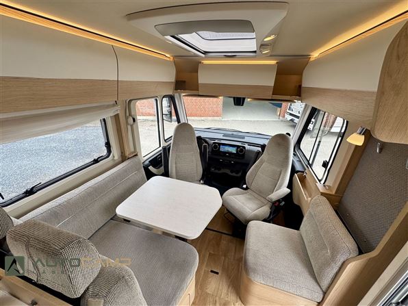 Udstyr: Automatgear, 170HK, MBUX multimedie, Bakkamera, Adaptiv fartpilot, Metallakering, 17" Alufælge, Helårsdæk, LED forlygter, LED tågelys, Pilotsæder m. varme, Centrallås, Gasbageovn, 142L køleskab, 100AH lithium, 260W Solcelle, 1000W inverter, Gasudtag, DuoControl, Gasalarm, Privacy frontgardin, Sengeopredning bag, Markise.