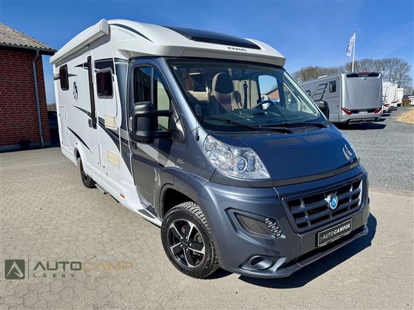 Her får man en lille men yderst veludnyttet vogn fra Tyske Knaus. Med en længde på kun 6,79m og bredde på 2,2m er den nem at komme rundt med og kører rigtig godt. Vognen er med enkeltsenge og kæmpe garage i bag, hvor man efterfølgende har det geniale badeværelse og klædeskab overfor. Forrest er siddegruppe og køkken placeret.