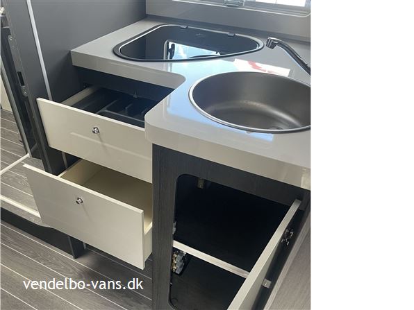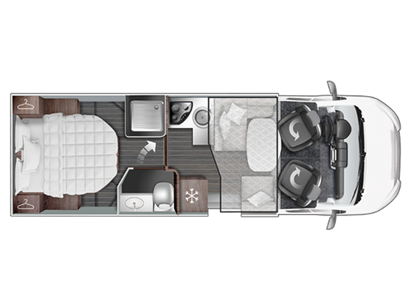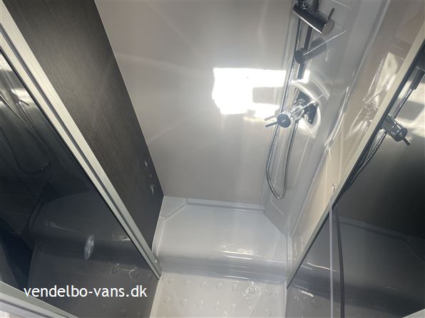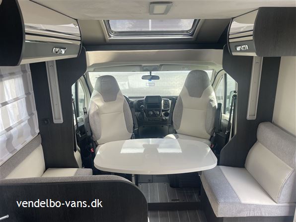 En vogn med mange muligheder hvor sengene kan hæves og sænkes, praktisk dør/rumdeler samt toiletrum og bruseniche hver for sig. En autocamper til dem som vil have max. komfort.