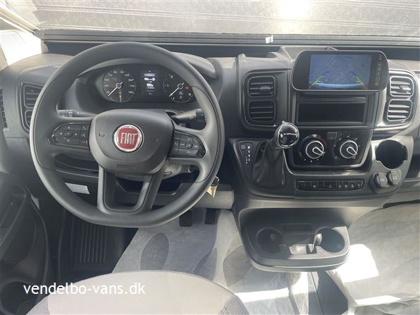 Vognen er udstyret med Selekt pakke: 9-trins Automatgear. Fiat Pakke: Tågelygter, Traction plus, 16" alufælge, sort kølegitter-luftindtag-forlygtekanter, Multifunktionsrat, bred bodelsdør med vindue og dobbeltlåsesystem tilkoblet centrallås systemet, Plissegardiner i førerhus, bakkamera og Solcelleanlæg.