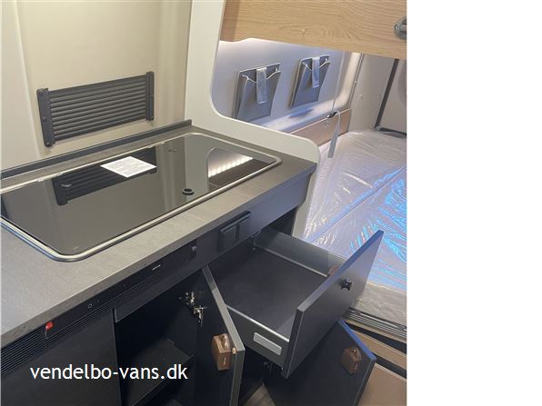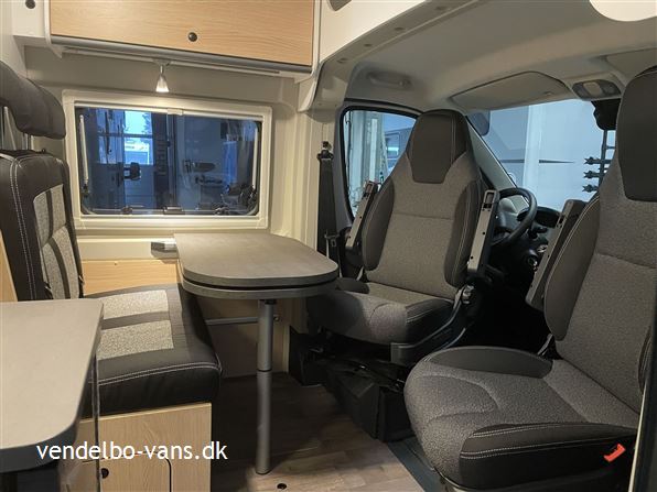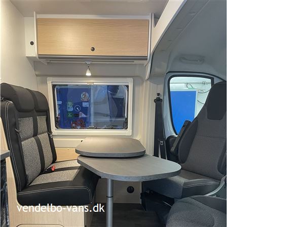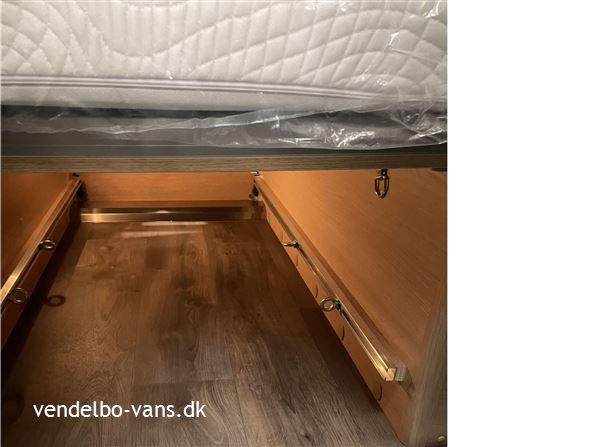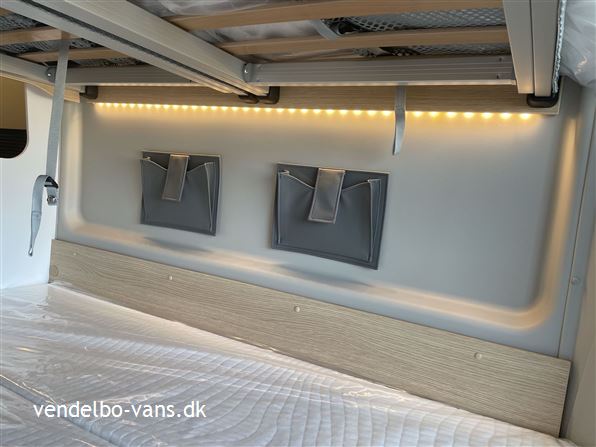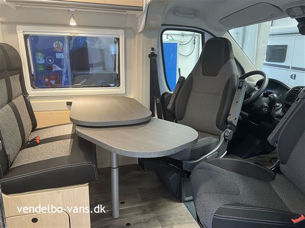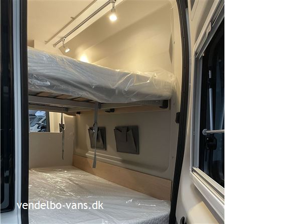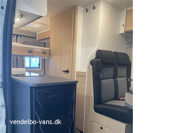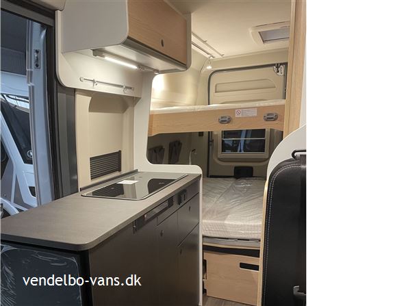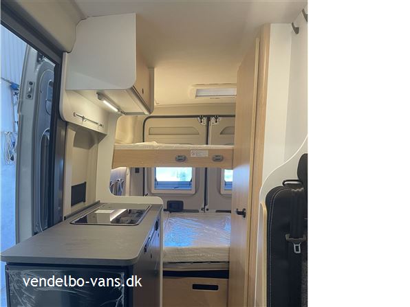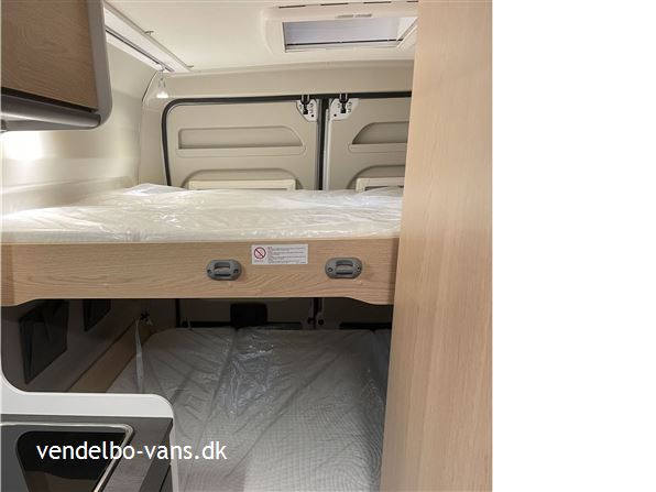 CLIFF Adventure Editions er blevet udviklet til eventyrlystne og oplevelseshungrende roadtrippere. Til alle, som drømmer og vil leve drømmen ud. Den øverste dobbeltseng kan nemt fjernes helt eller kun den ene sengeramme, så adgangen til den nederste seng bliver nemmere, såfremt man ikke skal så mange afsted. Denne vogn er bestilt hjem med Easy drive pakken, 16" alufælge er med i Adventure & basis pakken, derforuden har vi bestilt sengeopredning i dinetten og trærist i brusebunden.