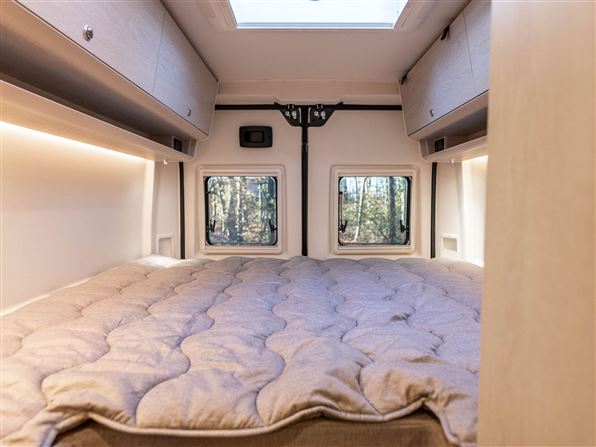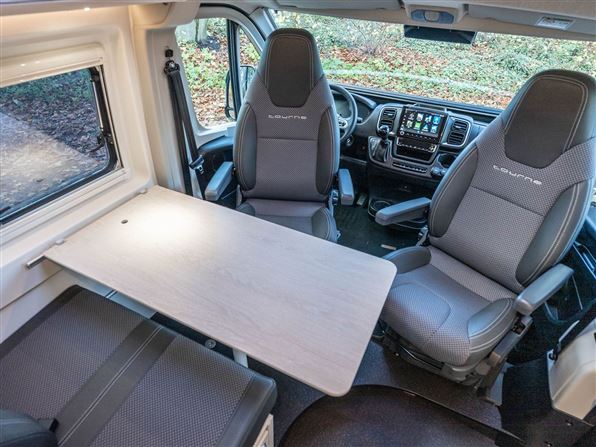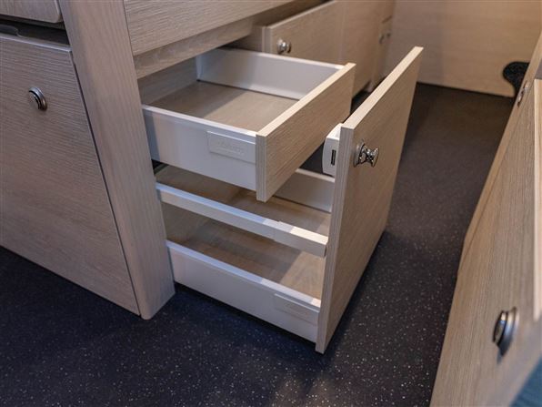 Indvendigt mødes du af Tourne’s originale og tidløse interiør, hvor hver detalje er gennemtænkt til både komfort og funktion. Sæderne komme i en polstring i slidstærkt, højkvalitets vegansk læder og et elegant interiør, der kombinerer eksklusive materialer med praktiske løsninger – fra soft-close skuffer og fuldt vandtæt badeværelse til Tourne’s fleksible Dream4System, som gør det muligt at skabe en rummelig opredning på kort tid.