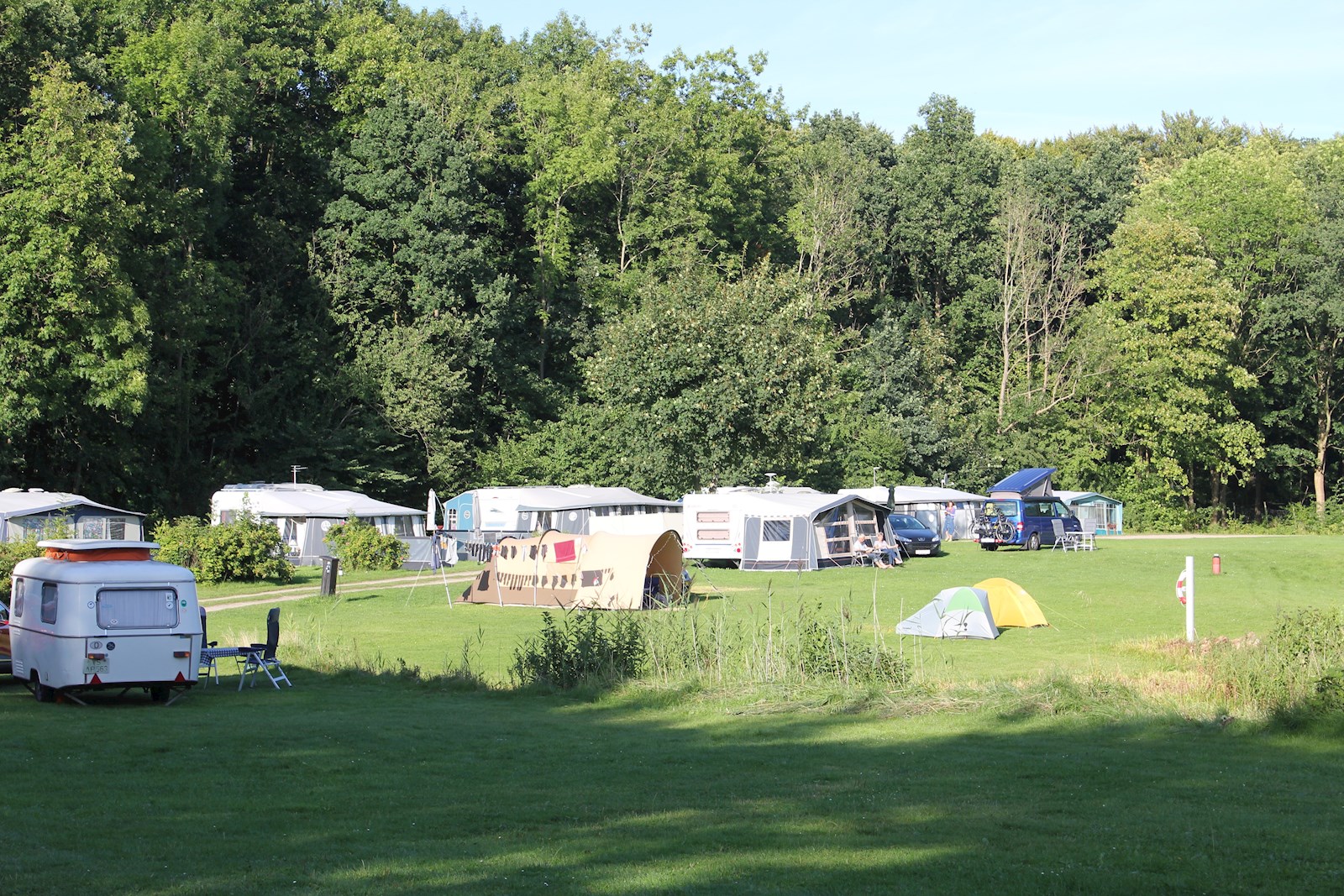 Nivå Camping på Nordsjælland ligger utrolig flot i landlige omgivelser tæt på stranden og strandengene. Pladsen breder sig ind i Lave Skov og ligger som naturpark med søer og stier.