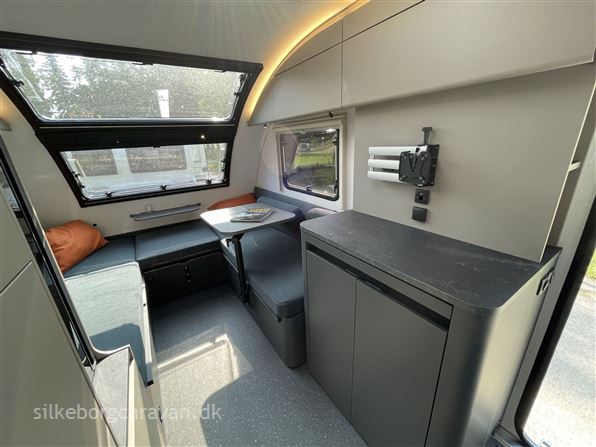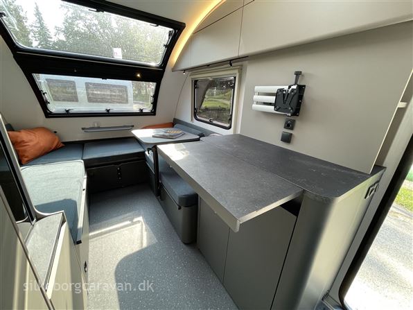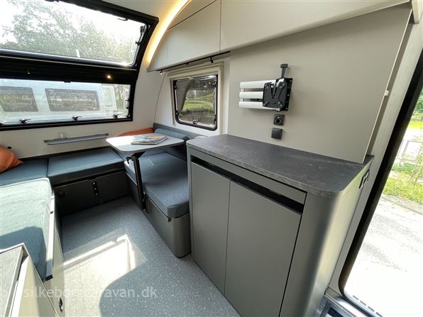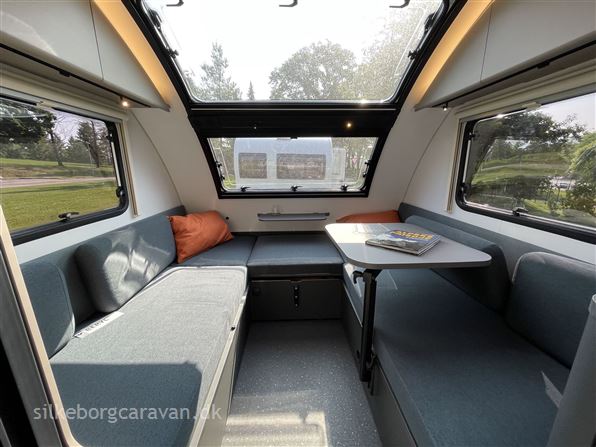 Inde finder du nyt praktisk slide-out bord ved kommoden. Badeværelset er helt nytænkt nu med svingbar væg der forvandler rummet fra bruserum til toiletrum. Køkkenet har fået ny form og ekstra opbevaringsplads, og mangler du bordplads kan kommoden udvides via et smart slide-out bord-system. Skylight vinduerne har fået vokseværk og de øvrige vinduer er "flat-panel" vinduer som visuelt går helt i ét med karosseriet. 391 LH indretningen er videreudviklet med fleksibelt svingbart "lagoon-bord" der giver mulighed for ny smart opredning. Nu med 3 forskellige oprednings-muligheder: 1) enkeltsenge, 2) XL dobbeltseng, 3) Kombi-opredning m/seng & siddeplads. Opbevaringsløsningerne er trimmet og tilgangen er forbedret.