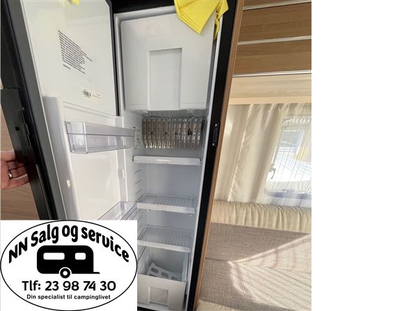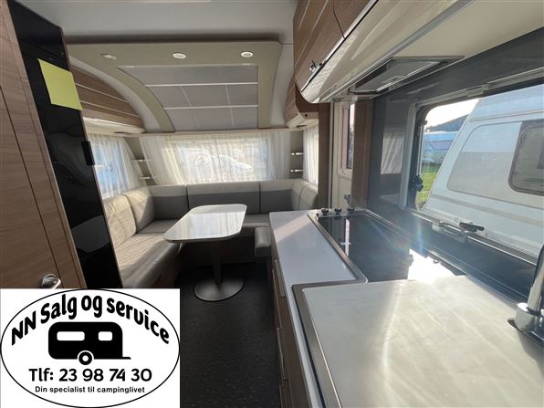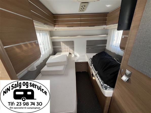 FANTASTISK flot og velholdt campingvogn, forrest i vognen er der en lækker rundsiddegruppe, midt i er der køkken med højt køleskab og badeværelse, bagerst er der 2 enkeltsenge.