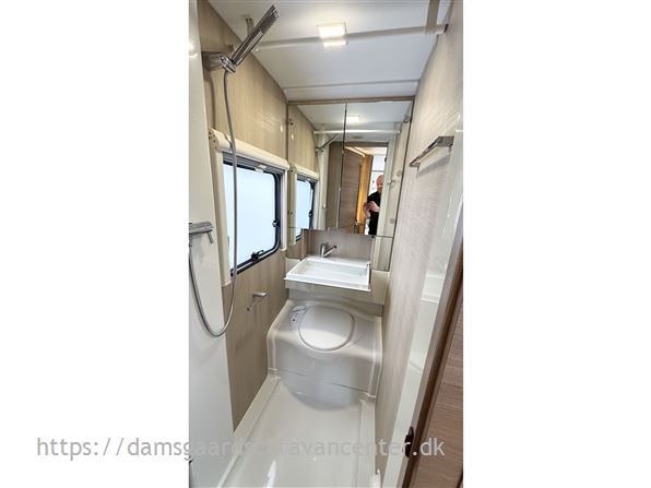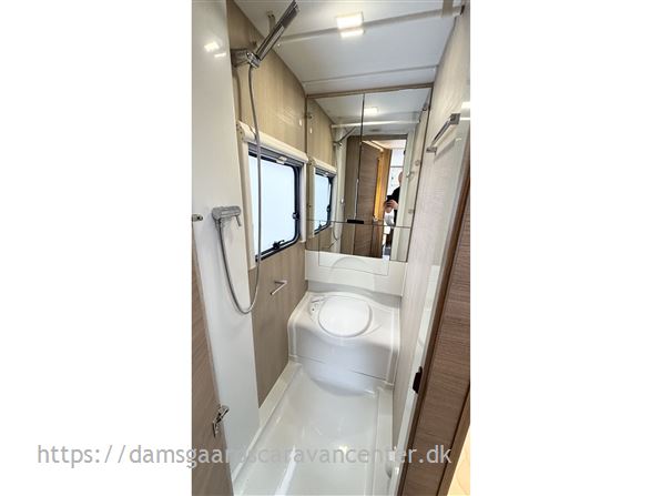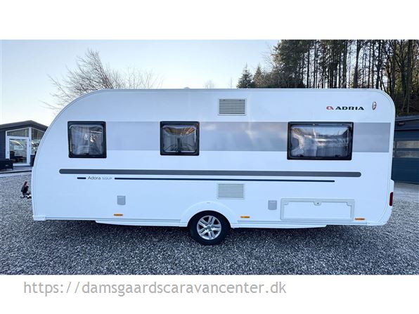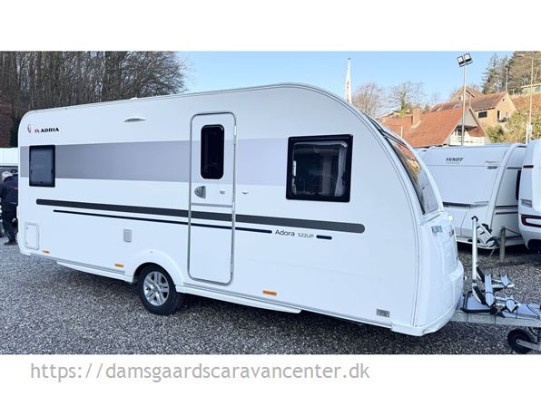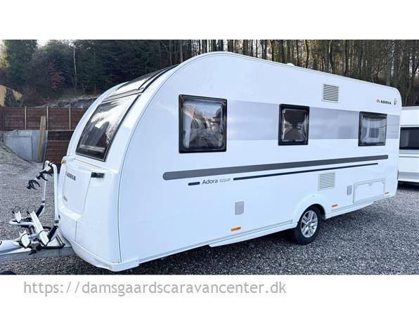 Adria Adora 522 UP årgang 2019 er en flot og velholdt vogn som er bygget med glasfiber tag og glasfiber sider. Vognen er indrettet med rundsiddegruppe i fronten under det store panorama vindue som giver fantastisk lysindfald. Bordet i rundsiddegruppen kan ligges ned således man her kan få et par ekstra sovepladser. Midt i vognen finder man i den ene side flot køkken med glasblus, køkkenvask og stort køleskab med frostboks. Modsat midten finder man bøjleskab. Bagerst i vognen er fin rummelig fransk seng og i denne ende finder man også toiletrum med toilet, håndvask, brusebund og bruser. Vognen står med Truma blæsevarme system, el gulv temperering, der er bluetooth højttaler system, tv holder, elevations sengebund, Thule cykelholder til 2 cykler frontmonteret, Isabella Capri North 250 fortelt med CarbonX stænger samt Tertek tv antenne. Der sidder derudover en Enduro Premium mover på som er fuldautomatisk med et lithium batteri.