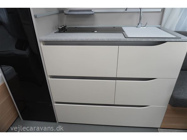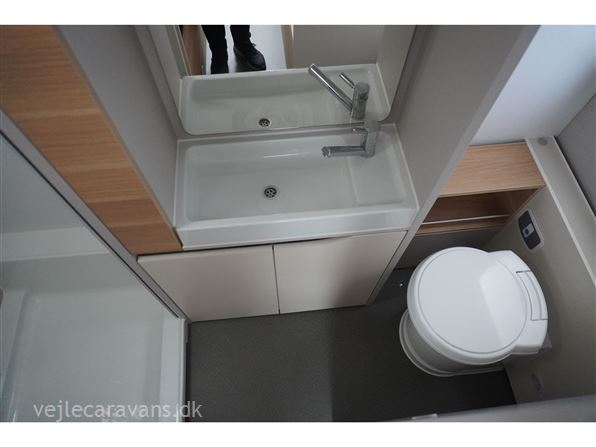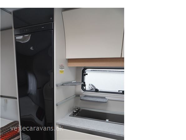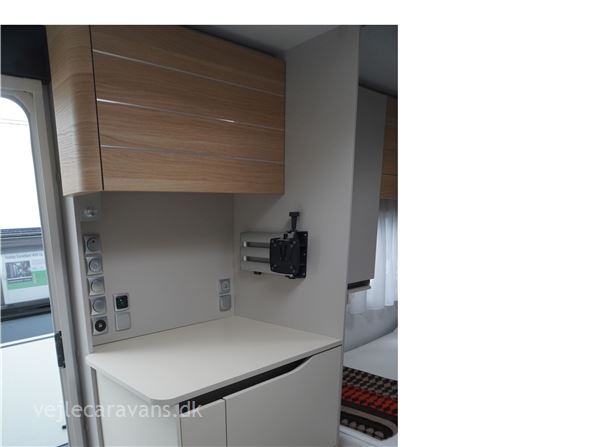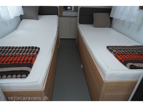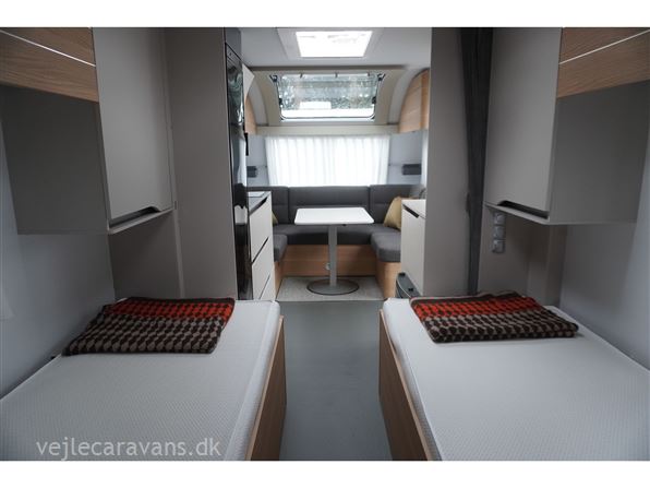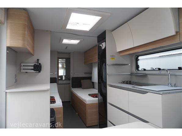 En flot campingvogn med 2 enkeltsenge, og toilet på tværs af bagenden af vognen. Rundsiddegruppe i front under panorama vinduet. Køkken i venstre side med 3 gasblus og skuffer, samt et køleskab på 142 ltr. Alt er i venstre side af vognen væk fra fortelt siden. Der er monteret en Thule 6300 markise på taget. Der medfølger ikke nogen fortelt med, så hør om mulighederne. Prisen er inkl leveringsomkostninger og nr. plade.