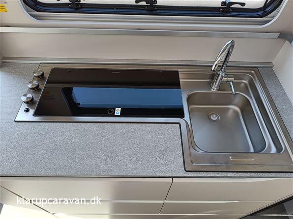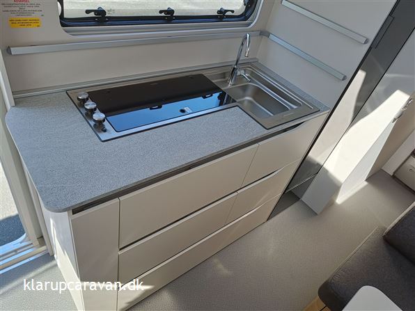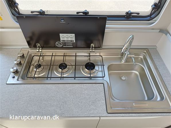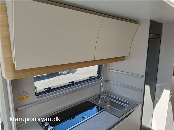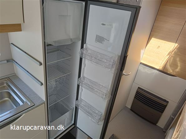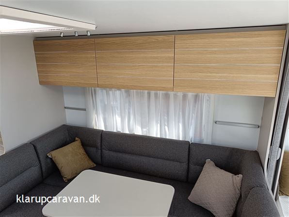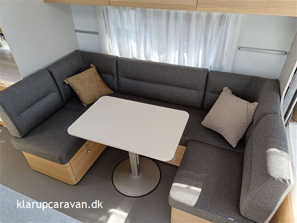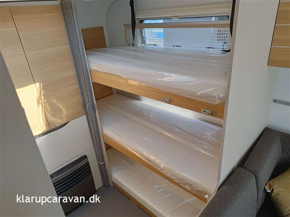 Populær familie vogn med 3 køjer og dobbeltseng på tværs i fronten. Rundsiddegruppe i midten af vognen, Køkken overfor siddegruppe med slimline kølekab på 140 ltr. Stort lækkert badeværelse med seperat brusekabine. Prisen er inkl. levering og nummerplade - Vi kan hjælpe med finansieringen - DET ER OS MED DE GODE TILBUD