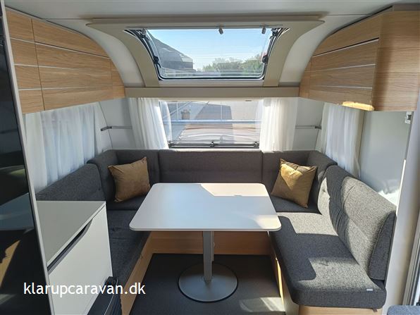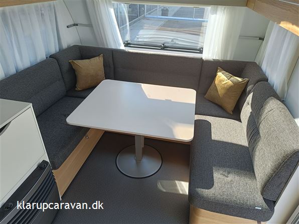Flot campingvogn med fritstående dobbeltseng i bagenden og rundsiddegruppe i front med panorama vindue. Køkken med store brede skuffer og et udtræksskab. 140 ltr. slimtower køleskab. Der er blandt andet bluetooth højtaler til opkobling fra telefon. Toilet tømmes i venstre side væk fra fortelt. Prisen er inkl. levering og nummerplade. Vi kan hjælpe med finansiering - DET ER OS MED DE GODE TILBUD
