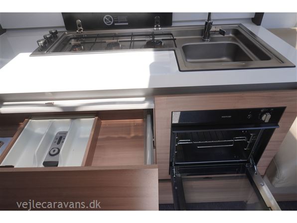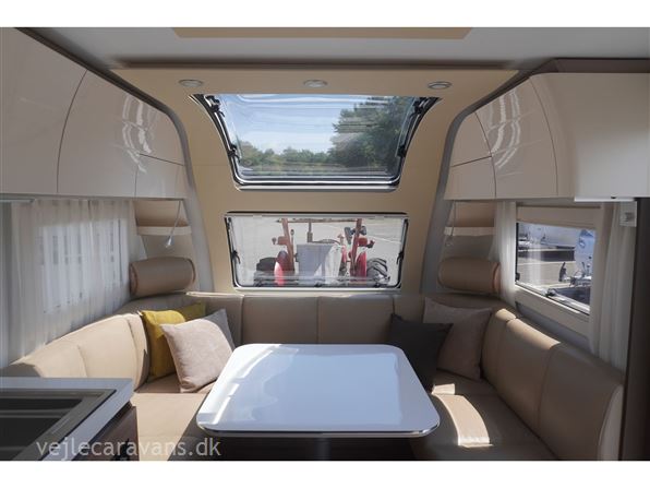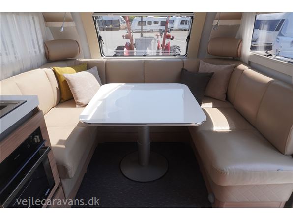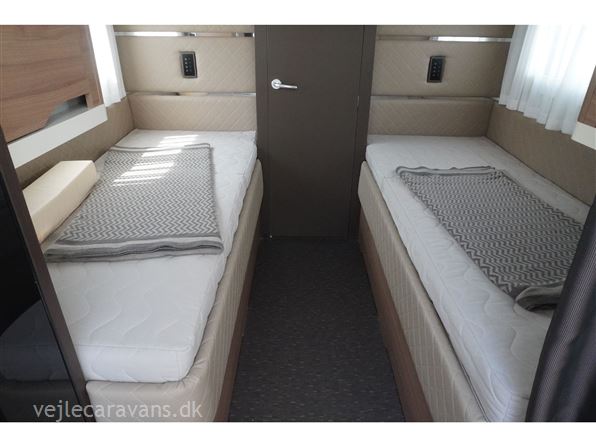 Enkeltsengs campingvogn med alde centralvarme og vandbåren gulvvarme. 2 enkeltseng med løftbar hovedgær. Toilet på tværs af bagenden af campingvognen, med bruser i højre side, og toilet i venstre side væk fra fortelt. Stor rundsiddegruppe med læder under panoramavinduet. Køkken med 3 gasblus, skuffer, gasbageovn, emhætte, samt et køleskab på 167 ltr. med separat fryser. Lige indenfor døren er der et indstikskab til overtøj. Der er monteret Truma XT mover, aicondition, duocontrol, ATC. Der medfølger et Kampa sun shine air pro 500 solsejl. Prisen er inkl. leveringsomkostninger og nr. plade.