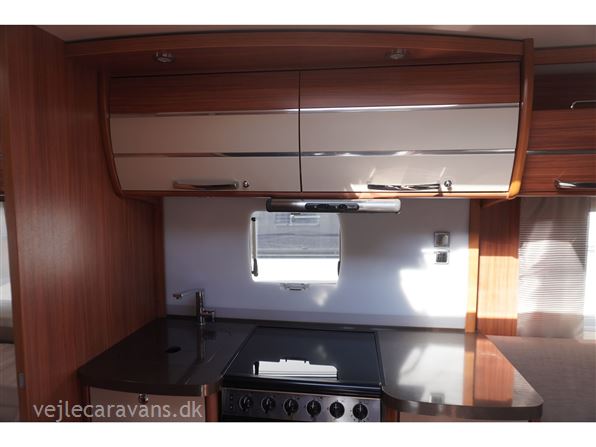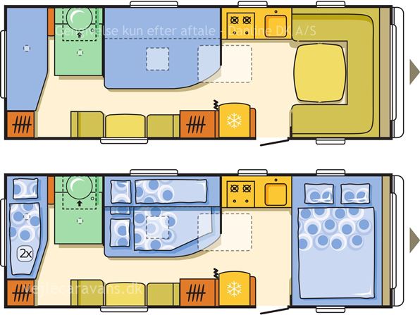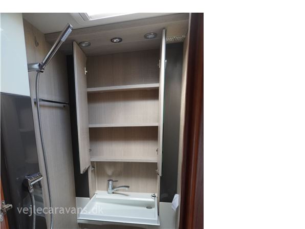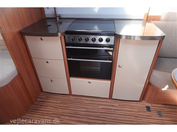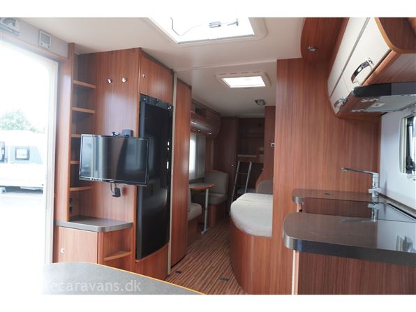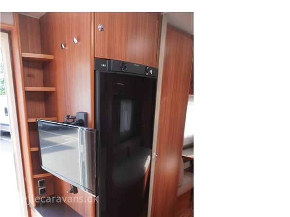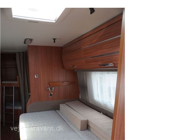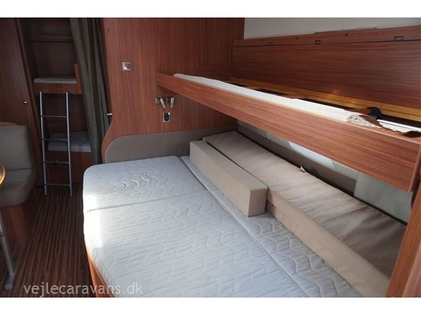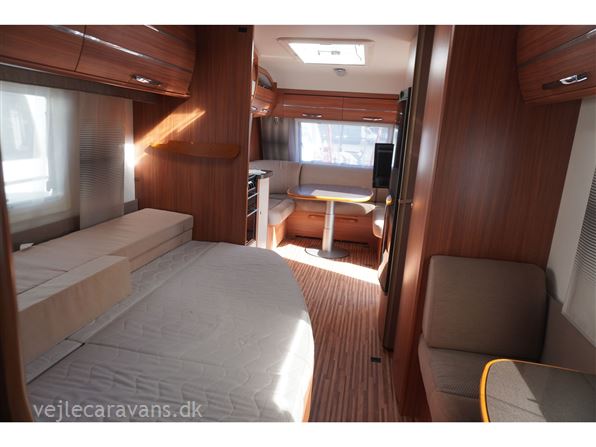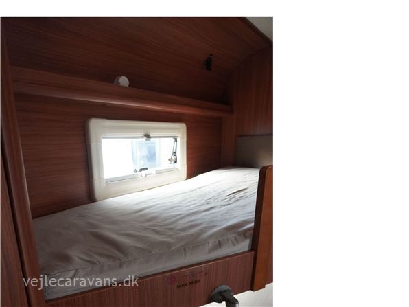Familie campingvogn med fransk seng midt i vognen med mulighed for en lave en køje over sengen, og en lille siddegruppe ved siden af. 2 køjer på tværs af vognen bag. Rundsiddegruppe forreste i vognen. Køkken i venstre side af vognen med komfur, emhætte, skuffer, og et køleskab på 179 ltr. Der er 2 højskabe og tv holder lige indenfor døren. Toilet i venstre side af vognen væk fra fortelt siden. Der medfølger et 1 år gammel Isabella commodore dawn med zinox stænger og et ældre eclipse solsejl. Vognen har Alde centralvarme og vandbåren gulvvarme. Prisen er inkl. leveringomkostninger og nr. plade. Der er 1 års garanti på vognen.