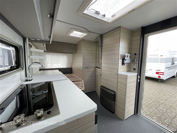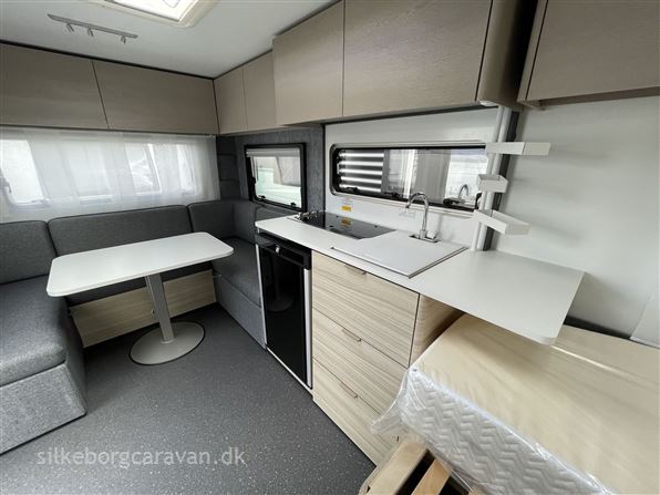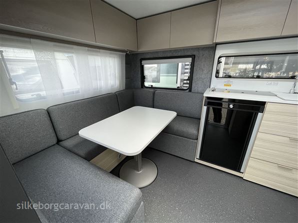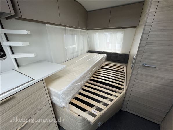 Dejlig rejsevogn med dobbeltseng, som trods størrelsen virker utrolig rummeligt. Interiøret på Altea 2025 har fokus været på at gøre materialerne lettere, samt mere anvendeligt end tidligere og udvendigt er der nu glasfiber på siderne også.