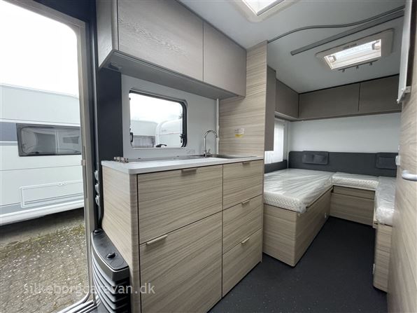 Dejlig rejsevogn med dobbeltseng, som trods størrelsen virker utrolig rummeligt. Interiøret på Altea 2025 har fokus været på at gøre materialerne lettere, samt mere anvendeligt end tidligere og udvendigt er der nu glasfiber på siderne også.