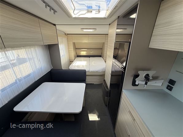 Bemærk: Prisen er incl. klargøringsomkostninger og nummerplade:-) Rigtig flot og velholdt 1-ejers vogn indrettet med fritstående dobbeltseng i fronten, sidesiddegruppe i midten med flot polster, endekøkken med stort køleskab og toilet med bruser i bagenden af vognen. Denne vogn er udstyret med AnnTex gulvtæpper lavet til vognen og et Dorema Monaco A-måls luftfortelt. VI FREMVISER GERNE VOGNEN UDENFOR NORMAL ÅBNINGSTID - KONTAKT OS FOR AT LAVE EN AFTALE!