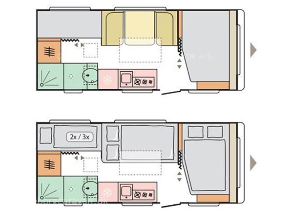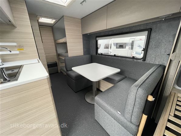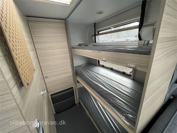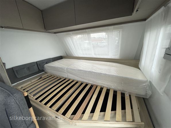 Dejlig rejsevogn med dobbeltseng og tre køjer, som trods størrelsen virker utrolig rummeligt. Interiøret på Altea 2025 har fokus været på at gøre materialerne lettere, samt mere anvendeligt end tidligere og udvendigt er der nu glasfiber på siderne også.