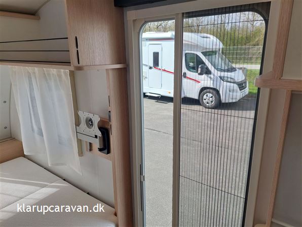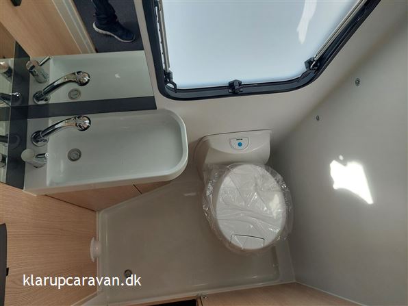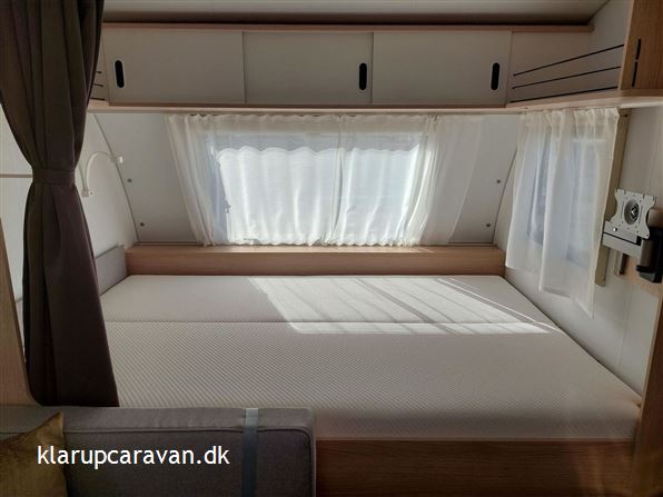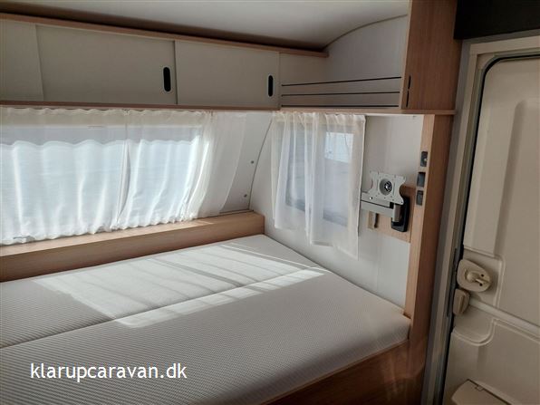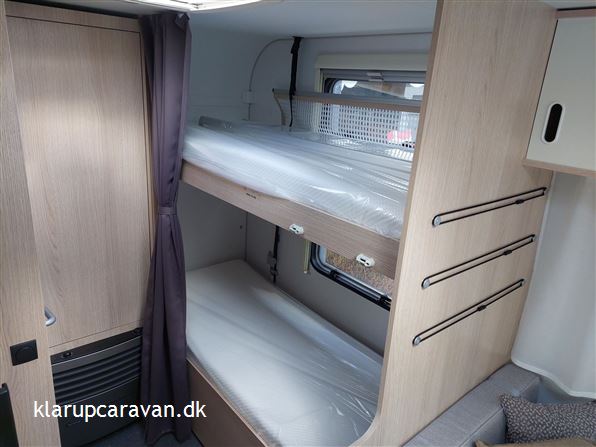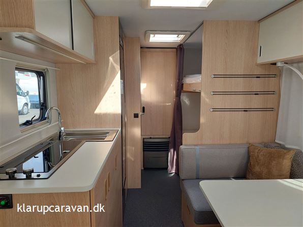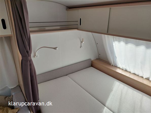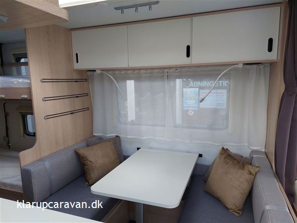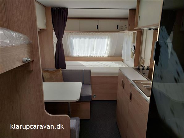 Familie campingvogn med 2 køjer på langs i venstre side bag og dobbeltseng på tværs i fronten. Siddegruppe midt i vognen. Køkken med 3 gasblus og et 140 ltr. køleskab. En rigtig fin letvægtsvogn trods størrelsen. Denne vogn er fabriksmonteret med elektrisk gulvvarme og fuld myggenetsdør. Prisen er inkl. leveringsomkostninger og nummerplade. Vi kan hjælpe med finansiering - DET ER OS MED DE GODE TILBUD.