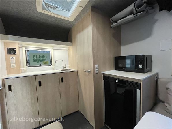 Adria’s mindste skud på stammen er rigtigt fornuftigt skåret i forhold til både indretning og udstyr, for selv om man er lille, så har man alligevel ”det hele” – bare tænkt på en ny og anderledes måde.