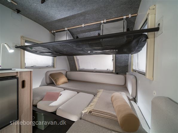 Liggemålet på den omdannede siddegruppe, er på på ca. 195 x 135 cm. Har man et mindre barn eller barnebarn med på camping, har vognen også en ekstra opredning i form af en lofthængt køje der kan klipses på eller af efter behov.