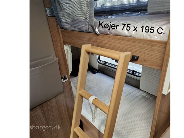 Velholdt 1 ejers vogn som sælges for kunde i ren handel med 9 Mdr. Garanti. - 2 x Køjer 75x195 Cm. - Midt sidde Grp. 120x200 Cm. – Db. Seng 140x200 Cm. Truma 5004 Gasvarmeovn med 12 V. Blæser - Varmt Vand – Indb. 40 Ltr. Vandtank – Dometic 170 Ltr. Køl/Frys – Stor Heki tagluge – Service klap 35 x 110 Cm. V.F. - Hel Myggenets Dør – TRUMA SR. Mover – 80 Ah. Agm Batteri – Serviceklap - Stabilisator – AL-KO ATC (Antislinger -kontrol) – Alufælge med nye dæk - Thule Cykelholder til 3 Cykler For - Thule 6200 markise 40 x 2,5 M. Inkl. lukket makisetelt. – 25 M. El. Kabel – Reservehjul - Div. Camping udstyr tilbehør til 3 personer.