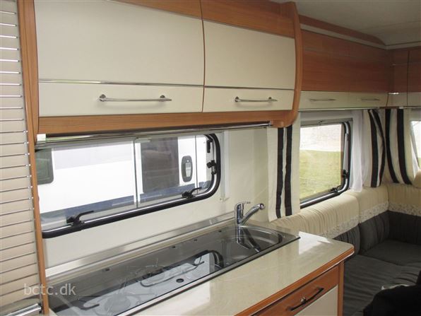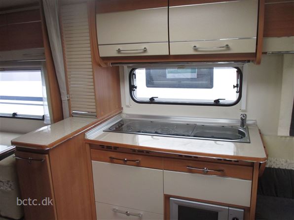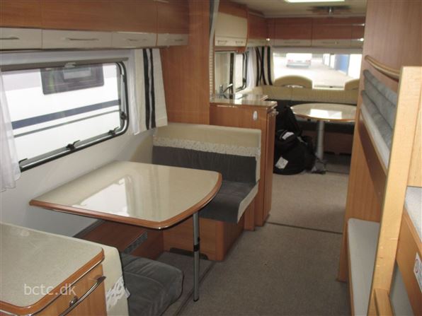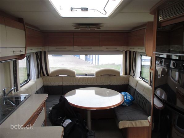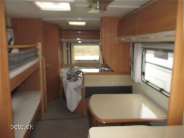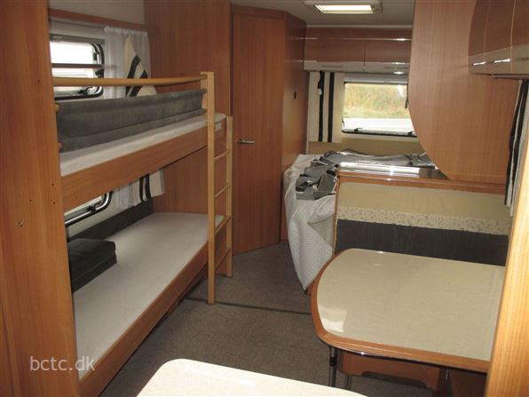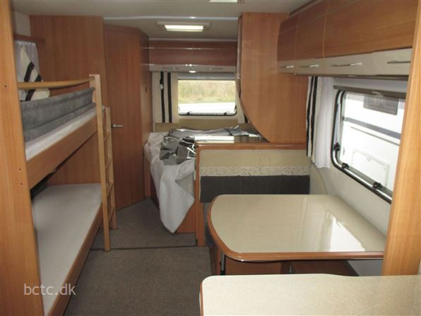 Vognen er pæn og velholdt og indrettet med stor rundsiddegruppe, ekstra bred fransk dobbeltseng, dejlig sidesiddegruppe samt køjesenge.