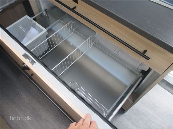 Vognen er vinteroptimeret med XPS-skum og GRP-sider samt gulvvarme. Derudover det store og lækre 150 L XL kompressorkøleskab.