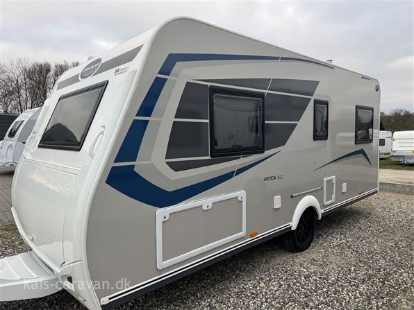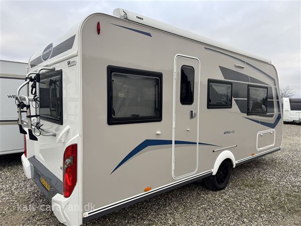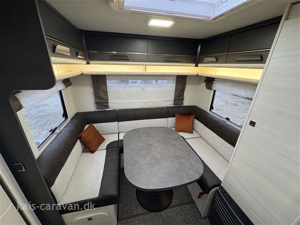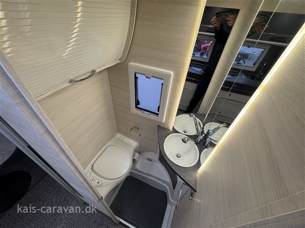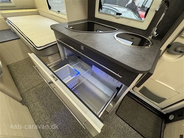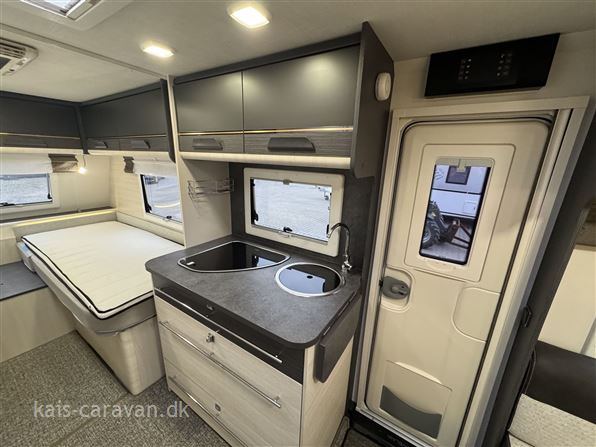 Let og pæn enkeltsengs vogn med lameludtræk så man kan lave en stor dobbeltseng i fronten af vognen. midt i vognen køkken med kompressor køleskabs skuffe og toiletrum med mulighed for brus. Bagerst i vognen rundsiddegruppe. Vognen er udstyret med Fuldautomatisk Truma Mover, batteri, aircondition, Isabella Commodore fortelt, Thule fastmonteret el markise, Cykelholder mm