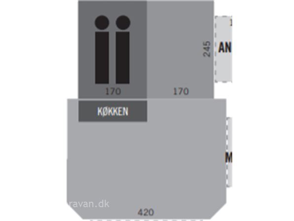 STORT KØKKEN MED KØLESKAB - KING SIZE LAMELSENGE - 11,7 M2 FORTELT - SUPER FLEKSIBEL OPSTILLING