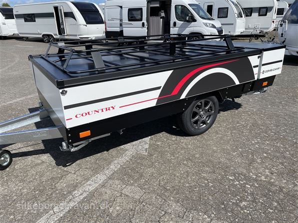 Alt dette udstyr er standard på Country Xclusive modeller: Fortelt (11,7 m2), opbevaringslommer, sovekabine, lamelbund 215 x 160 cm, Gulvtæppe til vognbund, Elstik i bagagerum, Dometic køleskab, El-modul 230V, Reservehjul, Alufælge, Påløbsbremse, Støddæmpere på undervogn, 4 x støtteben.