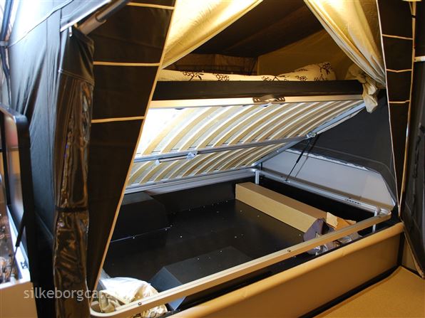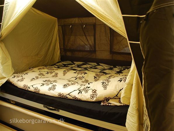 Her er der tale om den nye 2026 Combi-Camp Country Pure. Denne model er med den store King Size seng på hele 215 x 160 cm som er lavet i koldskum med 2 cm "Ergopur" skum i toppen.