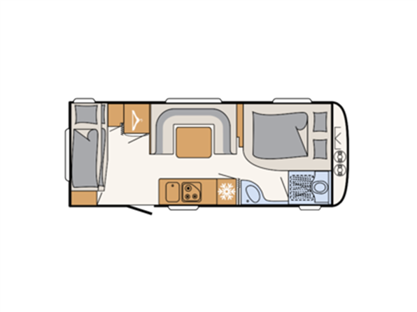 Denne Dethleffs-vogn er spækket med udstyr, der gør campinglivet nemt og behageligt: