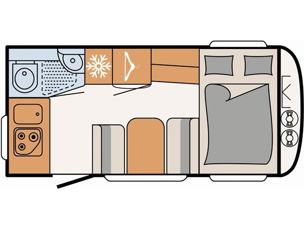 Dynamikpakke: Stabilisator, støddæmpere, stor vandtank, reservehjulsholder, spildevandstank og stor serviceluge – alt hvad du behøver til en sikker og bekvem rejse.