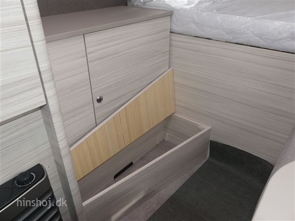 Stort opbevaringsrum under frontens seng – ideel til ekstra bagage.