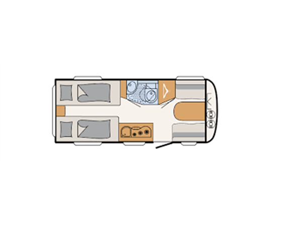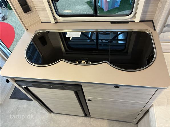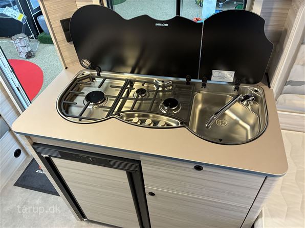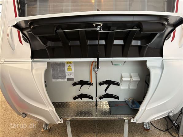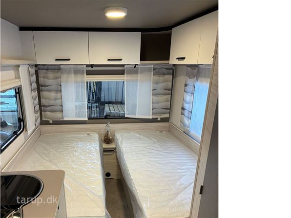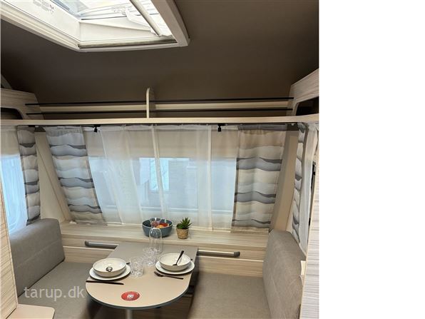 Enkeltsenge m/ udtræk, endesiddegruppe, kompressor køleskab, Truma blæsevarme, Active-pakke; består af: 1.500 kg aksel (kan opvejes hertil) Hjulkapsler 14" dæk, Sikkerhedskobling, Støddæmpere, Vindue i front, Tagluge 700 x 500 mm, myggenetsdør, serviceklap, Sengeombygning til dobbeltseng, Forberedelse til fladskærm, USB-stik til spotlightskinne, Ekstra belysning med LED-spotlights, Bruseudstyr, Mobil spildevandstank