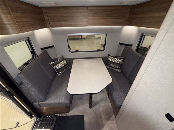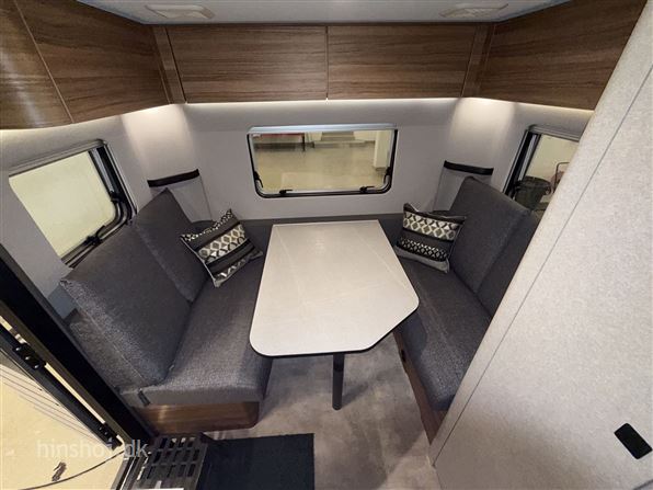 Lækker Eriba med enkeltsenge og sengeudvidelse, siddegruppe i bagenden i Seatlle Stone polster. Der er fint køkken med 83 liter kompresser køleskab samt flot toilet. Af udstyr kan nævnes Truma Combi varme, 1600 kg totalvægt, 4,0 m. boksmarkise, Panoramatag, multistik i teltside, Movingpakke (myggedør, cykelholder, bigfoot støttefødder, ekstra stikkontakter og usb stik), Elegance Pakke (Alufælge, glattesider i Crystal silver, træktøjsafdækning) Bo Komfort pakke (Ambiente lys XL, komfort hynde og puder med betræk, spejl) serviceklap, batteri m. lader og booster. Hinshøj Caravan "Stedet hvor campister mødes".
